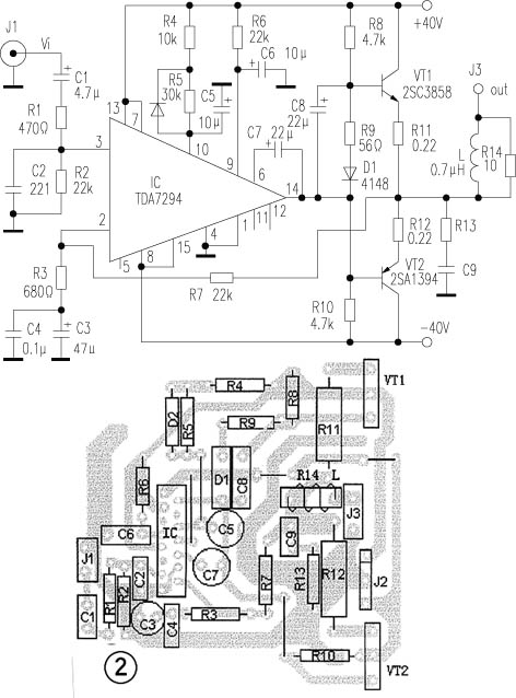 | 选择分类:当前分类——音响功放 相关联或者相类似的文章: 淘宝上的生意真难做,再见吧,淘宝!(166) 鼠标失控的解决方法(165) LM1875的应用(164) 为何节能灯不省钱(160) 单片机上网计时器(150) 无线电波的传播特性(146) 双50W数字功放TDA8902J(146) 是否该给无线输电模块的电路图?(141) 抢答器电路需改进(138) 为功放增加声控散热风扇(132) LM386功放集成电路的应用(127) TL431配合TOPSwitch-Ⅱ的正确用法(123) 皮包公司骗术全揭密!(118) 金属探测器制作说明(117) 打破移动通信霸权,争取公民合法权益(117) 连续可调的正负对称的稳压电源(112) Easy 51Pro 单片机编程器的制作与使用(112) 自制多功能LED电子钟和多功能定时器(111) 自制电热毯无级调温器(111) 大幅度增加555定时时间一法(108) 首页 前页 后页 尾页 本站推荐: | 用TDA7294推动的功放 2003年,第8期,类别:音响技术 电路如图1所示,推动级采用了意法(SGS-THOMSON)公司的新品TDA7294,该芯片内部推动级和输出级均使用了DMOS场效应管,用±40V供电,输出功率可达70W(RMS/8Ω)、低失真(0.005%),音色细腻、听感极佳,乃近年来屈指可数的优秀芯片。功率输出VT1、VT2采用山肯大功率对管2SA1394、2SC3858(VCM=200V,ICM=15A,PCM≥200W,fT=30MHz)。电路原理如下:信号经C1、R1输入IC正相输入端③脚。R7和IC第②脚的R3、C3、C4构成负反馈网络,本放大器的闭环增益约34倍。⑨、⑩脚分别是待机、静音端,由于第⑩脚R、C网络时间常数比第⑨脚大,使得开关机均在静音下进行,避免了开关冲击声,C7为自举电容。 1、 本站不保证以上观点正确,就算是本站原创作品,本站也不保证内容正确。 2、如果您拥有本文版权,并且不想在本站转载,请书面通知本站立即删除并且向您公开道歉! |