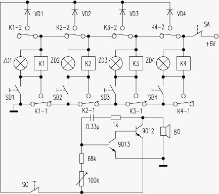 《电子报》2003年第1期第十版刊登的《一种抢答器制作结果》一文,笔者对其中的问题进行了分析,认为问题主要在电路设计而不在继电器,继电器只要工作电压与电源电压相符就可选用。该抢答器中每个继电器用了其一组常开接点和一组转换接点,继电器接点动作虽然很快,但动作完成总需要一定时间,通常以ms计,由该抢答器电路可知,若按下SB2,则K2得电,其K2-1与K2-2两组接点同时开始动作,在K2-1动作过程中,其动、静触头闭合尚未到位时,K2-2已将K2的电源切断,使K2失电,因此,该电路中K2-1不可能使K2实现吸合自保。 1、 本站不保证以上观点正确,就算是本站原创作品,本站也不保证内容正确。 2、如果您拥有本文版权,并且不想在本站转载,请书面通知本站立即删除并且向您公开道歉! |