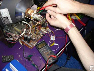 See that picture over there? DO NOT TOUCH ANYTHING ON THAT BOARD! Even if the television is not plugged in, the components can still contain enough electricity to give off a fatal shock, plus, avoid touching anything inside the television case.
