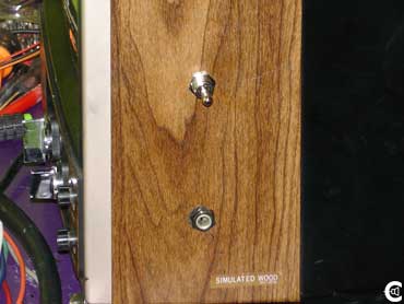 Finally, drill two holes in the simulated wood grain, and attach the switch, and audio jack to the holes. Now, plug it in, and crank up the tunes. |
