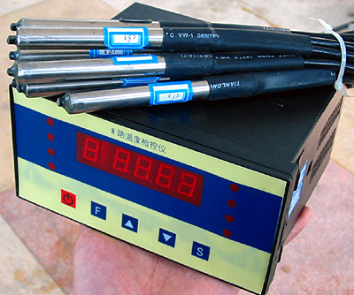 该检控仪以巡检方式对生产环境的空气温度、地温、营养液温度、育苗床温度等因子进行检测,并可根据设定值进行发布自动控制信号,控制温度调控设备。采用标准机柜面板安装结构;现场检测传感器为密闭探针式,信号线为单总线结构布线。
