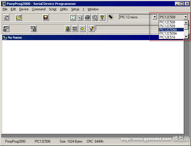 红框中选择单片机的类型,我们以PIC12C509A为例,这样在这里就先选择“PIC 12 micro”。