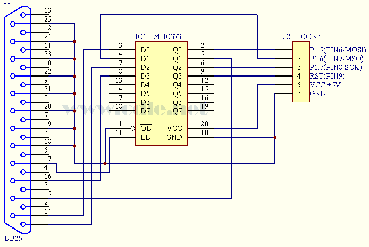 电路中只用了一片74HC373所以完全可以把电路装在DB25插针式并口插头内部,这个可以做到很小巧,可以很方便的使用。现在AT89C51停产了,制作一个AT89S51/S52下载线是很有必要的。特别是以前购买了C51编程器的朋友。而且制作的成本是十分低的,只要自己动手做一下就可以用不到十元就可以拥有一个学习51单片机的好工具。
