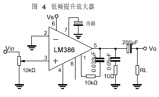 | 选择分类:当前分类——常用资料 相关联或者相类似的文章: 传感器调制器控制器(724) LED数字显示驱动集在电路。(716) 设置使用无线电台各种表格(714) 康铜、锰铜、镍铬合金线规格表(713) 超力通手机旅行充电器 (712) 科技的变革——电子图书馆(710) 调频广播接收芯片TEA5767的应用(707) ZC-2-10A自动充电机(705) 74HC595 的实际应用与编程 (701) 4.CMOS-NMOS集成电路的接口(701) 实验板驱动步进电机(697) 手机电路图中英文对照(续)(697) 12V铅酸蓄电池充电电路(694) DC-12V/AC-220V逆变电路 (694) 基础知识 之 实用电子电路入门(686) 78系列稳压IC的管脚判断法(684) 单片机资料:C2051/C51的详细资料(682) 简易家用逆变电源 (671) 常用发射三级管资料大全 (668) 超微型贴片FM发射片(无线高灵敏度监听)(667) 首页 前页 后页 尾页 本站推荐: | LM386 低电压音频功率放大器 LM386 低电压音频功率放大器 --------------------------------------------------------------------------- 一、概述(Description): LM386是美国国家半导体公司生产的音频功率放大 器,主要应用于低电压消费类产品。为使外围元件最少,电压增益内置为20。但在1脚和8脚之间增加一只外接电阻和电容,便可将电压增益调为任意值,直至 200。输入端以地位参考,同时输出端被自动偏置到电源电压的一半,在6V电源电压下,它的静态功耗仅为24mW,使得LM386特别适用于电池供电的场 合。