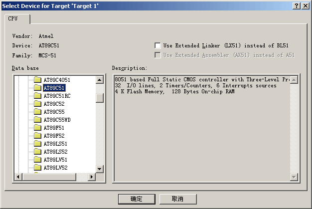 图1-4选取芯片  图1-5新建程序文件 |