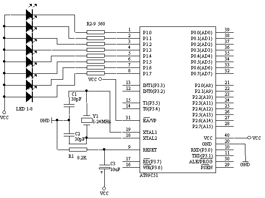 图5-1 八路跑马灯电路 |