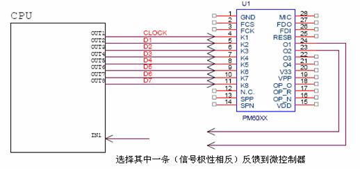 PM60在微处理器控制方式下,最大可以录放128段语音。PM60向客户提供了两种微控制器处理方式:串行输入接口和并行地址接口。