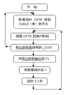因此,只要把控制码建成一个表,而利用MOVC 工,@A+DPTR做取码的操作,就可方便地处理一些复杂的控制动作,取表过程如下图所示:
