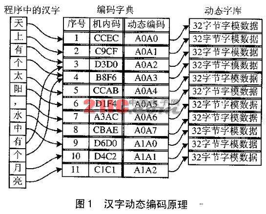 摘要:综合几种常用单片机汉字显示方案,提出一种基于PC机预处理的汉字动态编码和动态字库的显示方法,较好地解决了存储空间、显示速度、软件开发维护几方面的相互矛盾;具有平台化的优点,同时,给出针对MCS51优化的汇编显示例程。 因为汉字本身的特点,显示汉字始终是计算机在我国应用普及的一个障碍。最初,为了能在PC机上显示、处理汉字,国人发明了一种硬件设备"汉卡",后来各种各样的采用纯软件技术的中文DOS逐渐成熟,其中、西文软件的运行速度和性能还是有明显的差距。最终在软件进入支持UNICODE、真正实现国际化的WIN95以后,硬件跨入"奔腾"时代,才实现了汉字与西文的统一显示,但是这一切是以硬件资源的飞速发展为前提的。以国际GB2312为例,一、二级汉字库共收录了6000多个汉字,每个字按16×16点阵计算,字模需要占用32字节的存储空间,整个字库的规模在200k字节以上,高点阵(24点阵以上)和矢量字库以及Windows用的TrueType字体的字库规模都是几兆字节大小,这在 1 几种常用单片机显示汉字方法 (1)采用标准字[1] 这种方法仿器中文DOS的办法,将一个标准的汉字库装入ROM存储器,再根据汉字的机内码在字库中寻址,找到对应的字模,提取后送到显示器显示。因为采用了和PC机相同的编码(机内码),软件的开发和维护非常简单,基本上与写PC机软件差不多。而对单片机系统自身的要求则相对高多了,16×16点阵的字库需要256K字节,但是一般8位单片机的寻址能力只有64K字节,要进行存储器扩充,除增加很大一部分硬件成本外,还因为要进行存储器分页管理、地址切换,显示速度明显受影响,而且只能显示一种点阵字体。 (2)直接固化显示字模[2] 将要显示的语句中全部汉字的字模数据依次提取出来,顺序存放在存储器中,当显示时,直接取出字模数据送至显示器即可。这种方法占用空间少,程序实现简单,显示速度快;但是字模数据的提取和存储安排是一件委有繁琐的事件,要想大量显示汉字或进行程序修改几乎是不可能的,软 件的可维护性很差。 (3)建立带索引的小字库[3] 将全部要显示的汉字统一建成一个小字库,字库分为2部分:索引素和字模表。索引表由若干定长记录组成,记录的内容为:汉字机内码、地址码、识别码。其中地址码是该汉字字模在字模表中的位置,识别码标志该汉字的点阵形式或字体等。字模表中按素引存放汉字字模。显示汉字时先根据待显汉字的机内码在索引表中寻找,找到对应索引记录后,读出地址码和识别码,再根据此从字模表中读出字模,送显即可。这种方法可根据实际使用对字库进行裁剪,硬件开销较小,但是要进行复杂的查询运算,字多了平均寻找时间就会变长,效率降低。 2 汉字动态编码 综上所述,我们发现:在方法1中,程序员工作量最少,但单片要机的软、硬件开销最大;方法2中,单片机的开销较少,但是编写和维护软件极为困难;方法3,介于二者之间。显然,存储空间、显示速度、软件开发维护件间存在着矛盾。受各种PC机模拟软件的启发,我们提出一种基于PC机预处理的汉字显示方法--汉字动态编码,在实际应用中较好地解决了这一问题。其基本原理如下:建立一种新的编码机制,这个汉字编码是动态的;一个编码不与某个汉字具体相联系,而仅代表某个汉字在字库中的位置(这个位置也是动态的);用该码代替程序里字符串(C语言)或数据段(汇编语言)内汉字的机内码,单处机显示程序可根据这个新的编码直接在专门建立的动态小字库中找到字模,不用进行复杂的寻址、查找等运算,如图1所示。 实现汉字动态编码的过程就是先进行汉字识别,然后建立编码字典、提取字模、建立动态字库、改写机内码。首先扫描一遍程序文件,识别其中的汉字,将它们按出现先后顺序或机内码的大小排序,重复出现的剔除,建立了一个编码字典;根据汉字在编码字典的位置(序号),可以对汉字按区码、位码进行编码,也可以采用其它的方法编码,总之序号与它的动态编码存在一一对应关系;根据字典中每个汉字的机内码依次从PC机的汉字点阵字库中提取字模,顺序存储,建立一个小规模的动态字库,这样每个汉字的字模在字库中的位置就与其在编码字典中的序号、动态编码一一对应了。最后,再扫描一遍程序文件,按照编码字典将每个汉字的机内码改写为对应的动态编码。因为程序文件中的汉字随时会增减,编码随之而变,字库的大小也随时在变。所以称之为动态编码和动态字库。 考虑一般应用场合,1000个左右的汉字即可满足要求,按照汉字动态编码方法所需的字库仅为32K字节大小,只需要1片27256即可,几乎不用增加什么硬件。这样,字库的大小可由汉字 的多少控制,程序的编写和维护可以沿用中文系统下的习惯,仅需要编写好的单片机程序用PC机进行一次预处理,程序员从繁杂的汉字处理工作中解放出来,有效地降低了软件和硬件开发成本。