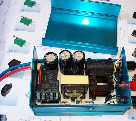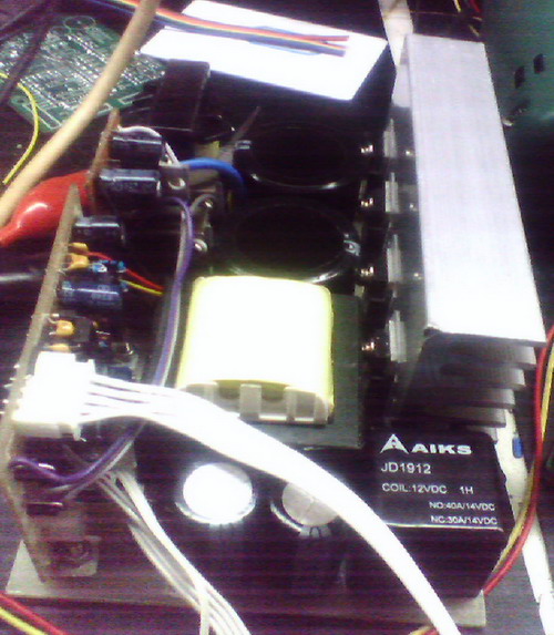 此机具有输出短路保护,输出电压超高保护(防止击穿烧坏后级功率器件),散热器热风扇自动启动,散热器冷风扇自动停,MOS管温度超高自动停止输出保护,电池电量低欠电压报警。本来想在前级加防反接措施,但是没有买到合适的保险丝或继电器。不知那位高手有没有除保险丝和继电器之外的可靠的防反接方法,我想请教请教!谢谢!