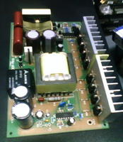 后来,我用配电用的电流互感器做铁芯.环形的铁芯,硅钢片质量不错.内经3.8cm外径6cm,厚约2cm,初级用1.5mm线绕30+30,次级0.5线1000匝,效率比起E形铁芯高了许多.