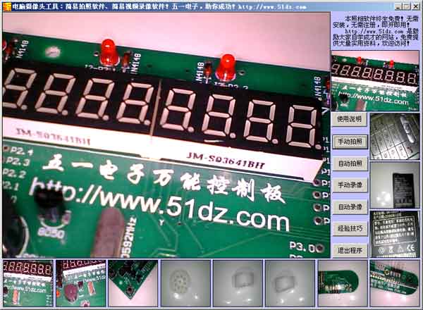 5、本软件追求的是体积小巧玲珑,使用简单方便,功能实用,因为是站长自己写给站长自己用的,所以,是根据自己的实际需要而写的,照出的照片和录像文件都是使用非常规则的命名,大家可以很方便的删除这些文件,减少电脑垃圾,适合大多数用户收藏使用!