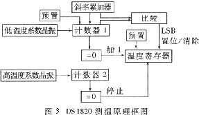 | 选择分类:当前分类——学单片机 相关联或者相类似的文章: 用单片机控制字符型液晶显示模块(1249) 电子基础知识--电感(1239) 发光二极管的几种特殊用法(1236) 国产OS?中文CPU?(1213) 是否已经欺骗你的眼睛?(1213) 部分万用表电路图集(1197) MY8848网站销声匿迹 消费者(1196) 充满电磁波的天空 (1194) 请广大朋友千万不要信封寄钱!(1193) 有地下王国吗?(1182) 用AT89C2051设计超声波测距仪(1171) 小小电子闹钟 生活学习良伴(1165) 厨房定时器(1160) 求职技巧:求职必成6原则(1154) 印制电路板的可靠性设计(1154) 李鬼网站换个网址继续行骗(1151) 面试的多方位攻略(1146) 一只小狗的职场启发(1142) 识别色环电阻的阻值...(1141) 网站在线管理系统(1141) 首页 前页 后页 尾页 本站推荐: | DS1820测温原理 DS1820测温原理如图3所示。图中低温度系数晶振的振荡频率受温度影响很小,用于产生固定频率的脉冲信号送给计数器1。高温度系数晶振随温度变化其振荡率明显改变,所产生的信号作为计数器2的脉冲输入。计数器1和温度寄存器被预置在-55℃所对应的一个基数值。计数器1对低温度系数晶振产生的脉冲信号进行减法计数,当计数器1的预置值减到0时,温度寄存器的值将加1 ,计数器1的预置将重新被装入,计数器1重新开始对低温度系数晶振产生的脉冲信号进行计数,如此循环直到计数器2计数到0时,停止温度寄存器值的累加,此时温度寄存器中的数值即为所测温度。图2中的斜率累加器用于补偿和修正测温过程中的非线性,其输出用于修正计数器1的预置值。 ![]() 在正常测温情况下,DS1820的测温分辩率为0.5℃以9位数据格式表示,其中最低有效位(LSB)由比较器进行0.25℃比较,当计数器1中的余值转化成温度后低于0.25℃时,清除温度寄存器的最低位(LSB),当计数器1中的余值转化成温度后高于0.25℃,置位温度寄存器的最低位(LSB)。 1、 本站不保证以上观点正确,就算是本站原创作品,本站也不保证内容正确。 2、如果您拥有本文版权,并且不想在本站转载,请书面通知本站立即删除并且向您公开道歉! |