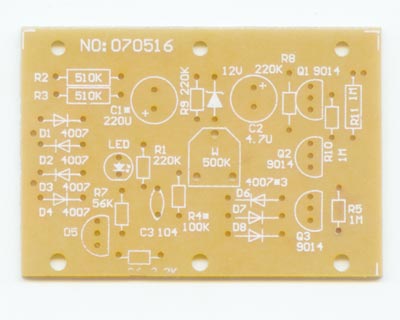 触摸延时开关制作资料:只要人手一碰开关的金属触摸端,灯就会点亮,经过一段时间的延时后(可以调节),灯自动熄灭。这种开关被广泛地运用于楼梯、走廊、过道等场所。采用单线出入,可直接替代原来的普通开关,不用另外接线。 一、电路原理图及工作原理: