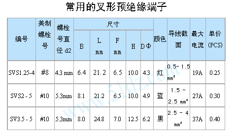 本站根据大家的需要准备几款常用的叉形预绝缘端子供大家选用,只要其中一种也行,为了减少本站工作人员的工作量,其每种数量不能少于10个,还望大家谅解。   共三种型号,每种6个,合计18个包为一包。