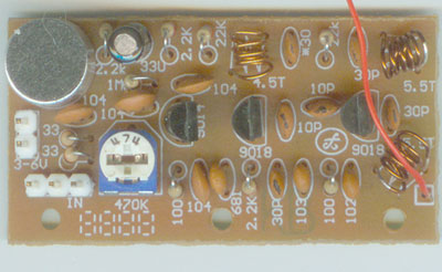 此板常见用途: 1、无线话筒:用户在唱歌、讲话或表演时可630度的任意转动和移动,电线不会绊脚、扯腿。 2、无线广播:老师讲课时可现场转播;也可以播放音乐、新闻、通知等,用FM收音机接听。 3、无线叫卖器:在街上推销商品,用无线话筒叫卖有一定新颖性,比有线话筒的广告效果更好。 4、无线窃听器:具有一定隐蔽性和安全性,可在远处用收音耳机收听,不用担心现场碰面尴尬。 5、无线报警器:可实现一定距离无人值守。例如在二楼监听一楼之门锁声音,起防盗报警器作用。 6、无线电子门铃:利用无线传播门铃声音就可做成无线门铃,配对使用还可改装成无线对讲机。 7、无线电子乐器:将口琴、二胡、吉它等乐器声音用收音机接收再用放大器播出,音乐效果更好。 8、电子助听器:调节收音机或话筒音量,将声音放大后再送入耳机,可以有效改善聋人听力。 9、声控小彩灯:将大功率功放输出端的音箱改接成瓦数相当的6V、12V电灯泡,调节音量合适位置。