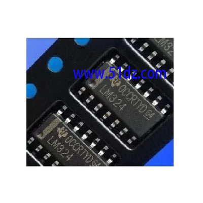 贴片LM324是四运放集成电路,外形如图所示。它的内部包含四组形式完全相同的运算放大器,除电源共用外,四组运放相互独立。每一组运算放大器可用图1所示的符号来表示,它有5个引出脚,其中“+”、“-”为两个信号输入端,“V+”、“V-”为正、负电源端,“Vo”为输出端。两个信号输入端中,Vi-(-)为反相输入端,表示运放输出端Vo的信号与该输入端的位相反;Vi+(+)为同相输入端,表示运放输出端Vo的信号与该输入端的相位相同。LM324的引脚排列见图2。
