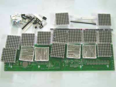 本套件包含STC89C51/2(或兼容芯片)、DS1302、11.0592M、32.768K、16个74HC595、16个PNP管、16个高亮红色8*8点阵、双面玻纤电路板、电阻、电容跳线等全部元件,可组装成LED点阵主板或者副板(副板无需安装MCU、DS1302和三极管等相关元件),用户必须有一定的电子基础和单片机基础,本制作难度相当高,制作成功与否跟本站无关,有心想制作的朋友可以动手尝试,但是制作不成功绝对不能有任何报怨!请事先就做好做不成功的准备。