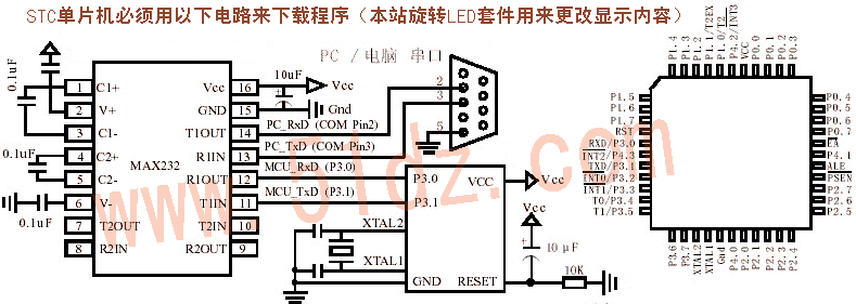 贴片封装的44脚的STC89C5x芯片主控制芯片一只:这就需要大家会单片机了,因为还需要大家自己将程序和显示内容写进芯片。买过本站59/88/119元的STC开发板的朋友,将电源、地、P3.0、P3.1用四根导线一一对连,都可以给本芯片写程序。(说明:本站不义务教单片机,不要认为买了本站产品就一定要教你单片机,都是很简单的,请自学!要我们教是可以,但是请交学费,哪怕教再简单的也要收费,我们看不起那些自己不动脑不动手,什么事不论大小都问别人的人,请谅解!为什么要这样无情?因为本站提供的资料、套件就算有少少不连接的地方,通过自己努力一定是能解决的,再说,我们一直在不停的帮绝大多数用户解决相对较难的问题!对于太简单不动脑筋的问题(看书就会懂、看说明就会懂)我们没有时间回答。)