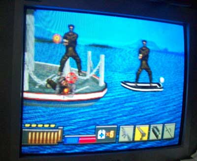 海上的战斗,看到我的子弹已经不多了,武器也不多了,生命也接近为零了,游戏就要结束了。具体有多少关本人不清楚,后面是些什么关本人也不清楚,本人不喜欢玩游戏,只能玩到第二关,实在是不好意思!