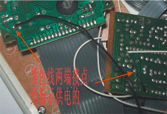 4)显示屏控制板和主板还要焊一条黑色线连起来,给电源指示灯供电。