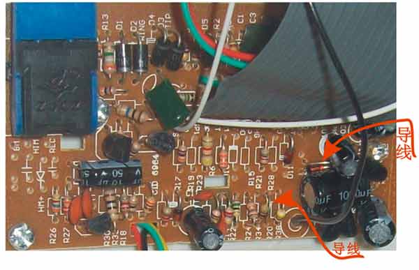 手柄部分元件简单,注意咪头的正负极,红色接正,绿色接负极,两条长线黑色和黄色线接150Ω喇叭,150Ω喇叭不分正负极。