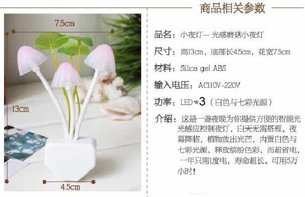 3.美观:可爱诙谐的蘑菇造型,改变了传统灯具的古板形象增添生活情趣,让您感受大自然风情。