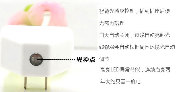 1.节能:小夜灯采用当今最流行的LED技术,超低的用电量,低至1年仅耗1度电。