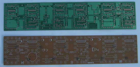 此电路板适合学生、电子爱好者学习装配,提高实际动手操作能力。(此板需要配石英晶体振荡器、4511六支、4518三支、4040和4060各一支、超亮度发光管130、53只电阻等元件。