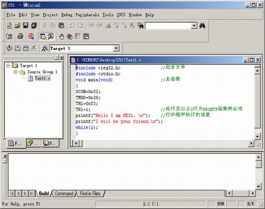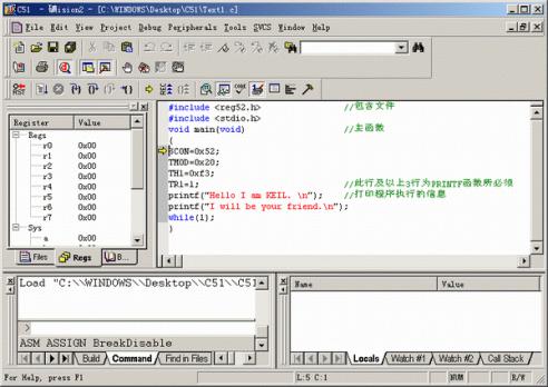 printf(“Hello I am KEIL. \n”);   //打印程序执行的信息