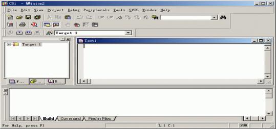 进入 Keil C51 后,屏幕如下图所示。几秒钟后出现编辑界